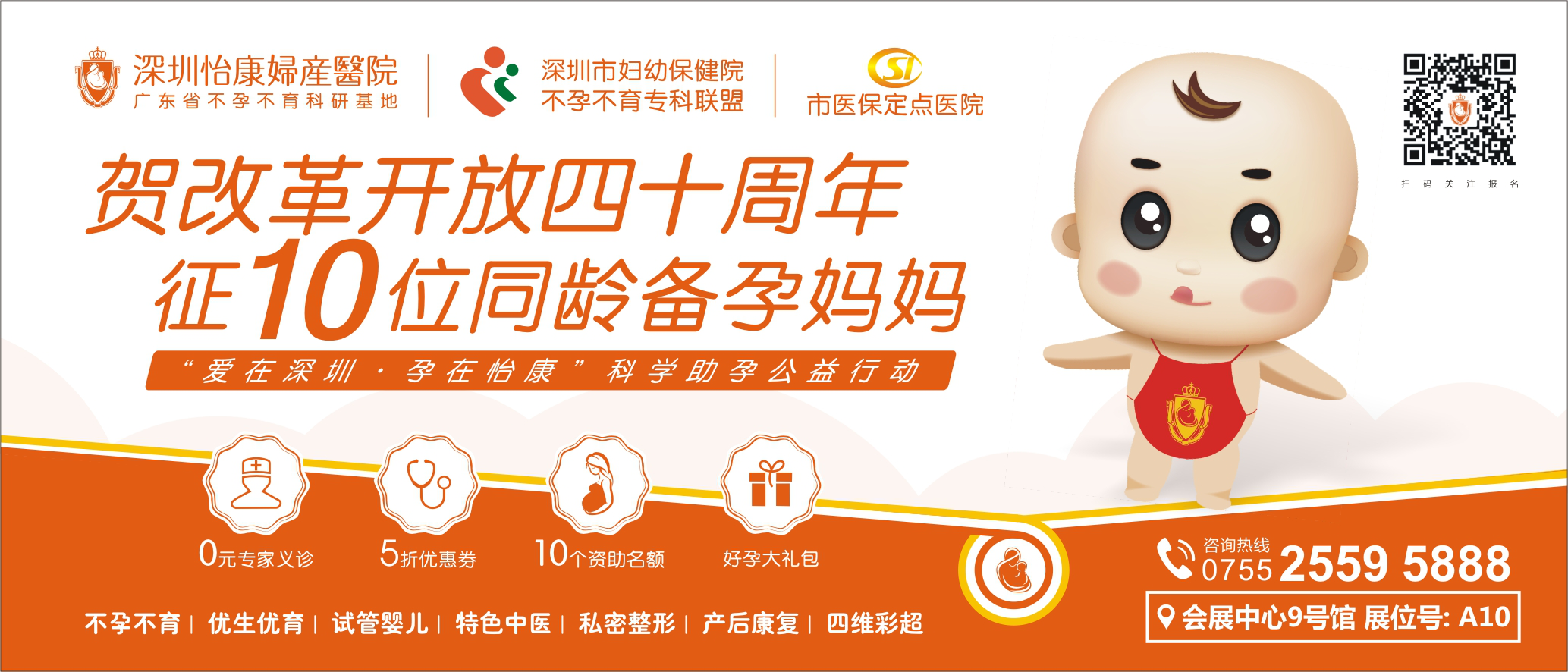 贺改革开放40周年敬献大礼 深圳怡康妇产医院携“康宝”登录母婴展 引发观展热潮,此次怡康妇产医院参展主题为“贺改革开放40周年,征10位同龄备孕妈妈暨‘爱在深圳·孕在怡康’科学助孕公益行”,值此改革开放四十 周年之际,怡康秉承“科学、精准、关爱”的建院理念并充分发挥怡康在不孕不育诊疗领域的技术领先优势,为广大备孕/难孕/再孕女性 送去福利。现场妈妈们积极踊跃报名,更有在怡康成功怀孕的高龄妈妈带着孩子亲临现场,将现场的气氛引向高潮!